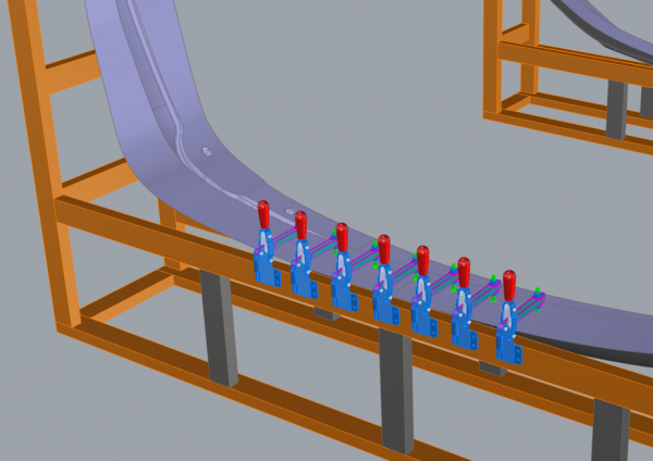 저희는 첨부드린 이미지와 같이 지그를 제작하여 형틀을 고정하는 용도로 토글 클램프를 사용하고있습니다.