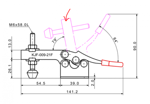 첨부파일에 표시한 부분이 언클램프 상태로 고정되어 있지 않고 내려 온다는 것입니까?
