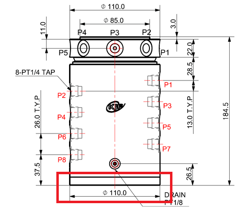 첨부된 그림파일의 하단 빨간색 사각표시부분 Ø100부분에 조립성 공차 규제가 있는지 문의드립니다.